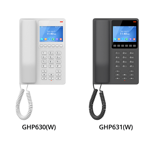 The GHP Series of hotel phones feature easy-to-use IP phones for any hotel room that can be programmed and customized based on the needs of hotels and their guests. Grandstream Hotel IP phones deliver high-quality audio features for clear audio every time. Its latest design and security features make this a best-in-class IP phone for hotels and similar organizations to be used for communication.
